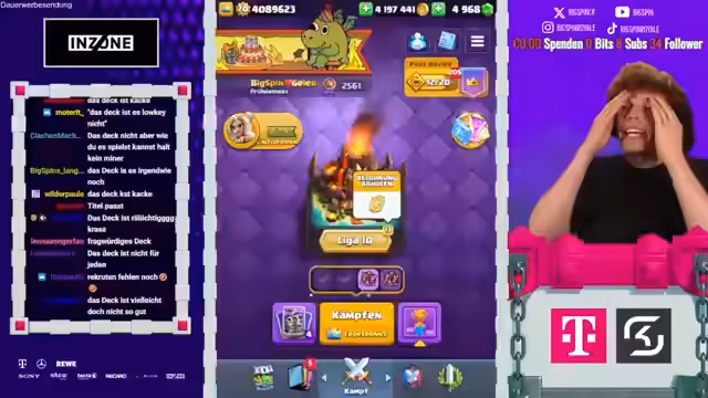 00:40:30Ein wiederkehrendes Thema ist die Reaktion der Gegner, die scheinbar bewusst sehr starke Konter-Decks gegen das gewählte Deck des Streamers einsetzen. Das führt zu der ironischen Situation, dass der Streamer sein eigenes Deck als 'Wutköder' bezeichnet, da es Gegner anlockt, die es direkt und brutal kontern. Diese Taktik wird als 'Rage-Bait' oder 'Wutköderei' bezeichnet und als Ursache für die frustrierenden Spiele identifiziert.