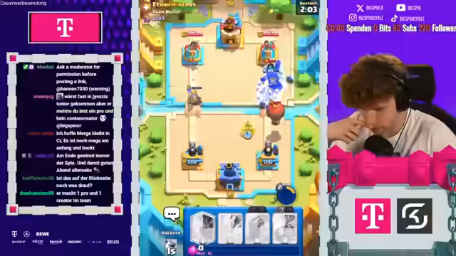 00:00:13Der Stream beginnt mit einer enthusiastischen Begrüßung des Chat und einem Ausblick auf das bevorstehende Event. Der Streamer kündigt eine hohe Energie und einen "sehr, sehr, sehr geilen Stream" an, der sich direkt auf das Turnier konzentrieren wird. Es gibt erste Erwähnungen von Spielern wie DoomCR und Zoom Alex, bevor der Fokus auf ein frühes Clash-Runde gerichtet wird, in der der Streamer das Deck von Boran gegen den Skelly King analysiert.