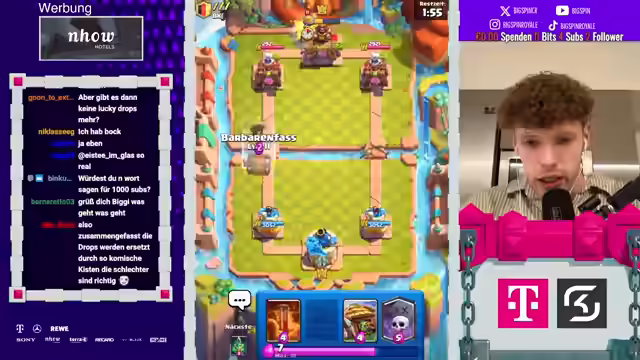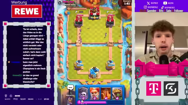 00:01:09Es gab Unverständnis bezüglich der Änderungen im neuen Update, insbesondere bezüglich der Lucky Drops. Trotz eines detaillierten 24-minütigen Videos, in dem die Änderungen ausführlich erklärt wurden, gab es Kommentare von Zuschauern, die das Video offenbar nicht vollständig angesehen hatten. Es wurde klargestellt, dass die neuen Season Lucky Chests die normalen Lucky Drops nicht ersetzen, sondern zusätzlich oder anstelle anderer Belohnungen in Mainstein-Events kommen. Die Anzahl der saisonalen Lucky Chests ist auf 20 bis 25 pro Saison begrenzt. Es wurde betont, dass es keinen Grund gibt, das Update zu kritisieren, da es die Progression im Spiel nicht negativ beeinflusst. Um die neuen Belohnungen zu demonstrieren, wird eine Grand Challenge gespielt. Es wird hervorgehoben, dass die Lucky Drops in Magic Lucky Chests umbenannt werden, wobei sich am Inhalt nichts ändert und zusätzlich saisonale Lucky Chests eingeführt werden, die beispielsweise bei Milestone Events erhältlich sind. Die allgemeine Progression wird nicht verschlechtert, was als sehr wichtig erachtet wird. Die Umbenennung in Chests erfolgte, weil die Community sich Kisten als Bestandteil von Clash Royale gewünscht hat.