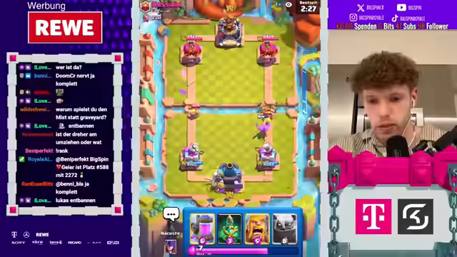 01:43:21Es werden Spielsituationen analysiert und Strategien diskutiert. Der Fokus liegt auf der Optimierung von Plays, wie dem Einsatz von Einheiten wie Berserkerin, Baby Dragon und Hexe, sowie dem Timing von Pumpen. Es wird überlegt, wie man auf gegnerische Züge reagiert und welche Plays am effektivsten sind, um den Turm zu verteidigen oder anzugreifen. Dabei werden auch alternative Strategien und deren Vor- und Nachteile besprochen. Es werden auch Taktiken wie der Golem-Knick und der Einsatz von Heilern diskutiert, um das Spielgeschehen zu beeinflussen und Vorteile zu erzielen. Es wird auch die Bedeutung von Elixier-Management und das Erkennen von Matchups betont. Es wird festgestellt, dass ein zufälliger Zuschauer im Call ist und Ratschläge zu seinem Deck gibt. Es wird über die Sinnhaftigkeit von Plays diskutiert und demonstriert, dass ein Play nicht gut ist, wenn er nicht funktioniert.