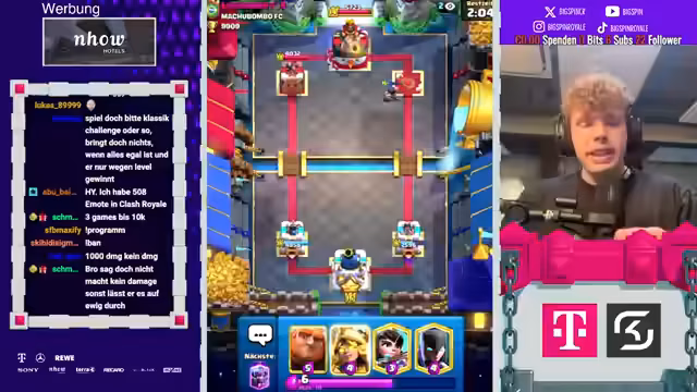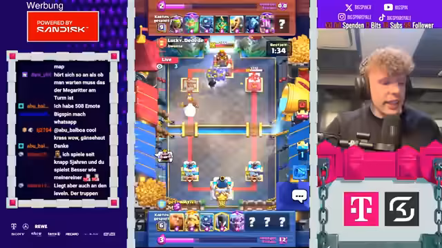 00:21:31Bigspin erklärt grundlegende Strategien für Beatdown-Decks: Man platziert Tanks wie Riesen oder Mega-Ritter hinten und baut dahinter einen Push mit Support-Einheiten auf. Das Kernprinzip ist die Kombination aus einem Tank mit viel Leben und Damage-Karten. Wichtig ist immer, Truppen hinten zu spielen, um Elixir-Vorteile zu nutzen und bei vollem Elixir starke Angriffe zu starten. Besonders bei Level-Gleichheit ist Cleverness entscheidend, da Pay-to-Win allein nicht mehr hilft.