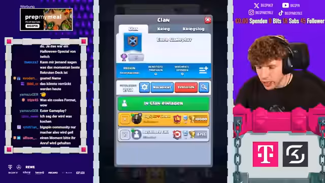 01:46:55Ein weiterer Kandidat namens Luis, bekannt als 'Skibidilatze' im Spiel, tritt dem Clan bei. Der Streamer ist beeindruckt von Luis' 349-Tage-Streak im Spiel, bei der er jeden Tag online war, um seine Lucky Drops zu sammeln. Er lobt Luis für diese Hingabe und vergibt ihm dafür eine 1 in der Arbeitszeitwertung. Luis, der noch zur Schule geht, spielt ein Mortar-Deck, das der Streamer zuvor vorgestellt hatte. Er schätzt seine eigene Leistung auf eine 7 ein und erklärt, dass sein Ingame-Name 'Skibidilatze' von seinem Nachnamen 'Striglaze' abgeleitet ist. Während des Gameplays zeigt Luis eine starke Leistung, verteidigt gut gegen den Ballon-Druck des Gegners und führt das Spiel an. Er äußert den Wunsch, die Kampfheilerin aus dem Spiel zu entfernen, da sie in Decks wie Golem nervt. Trotz eines Lightning-Zaubers des Gegners behält Luis die Oberhand. Der Streamer vergibt Luis eine 1- für sein Engagement, seine Streak und sein starkes Gameplay, obwohl es nicht ganz perfekt war.