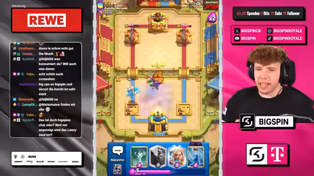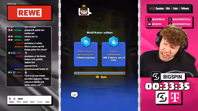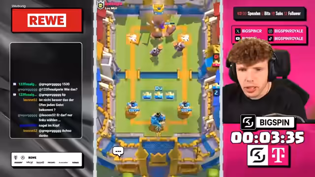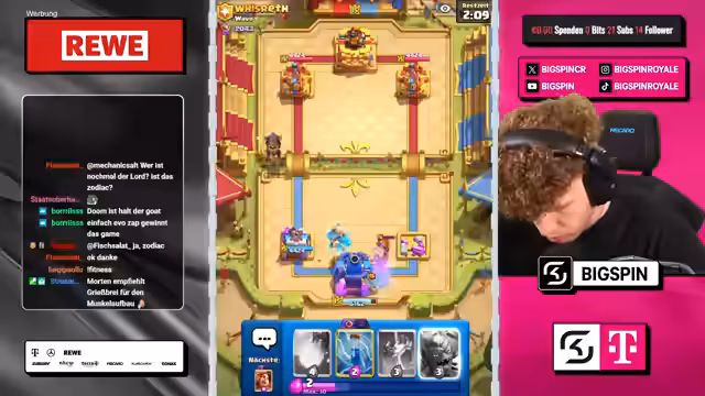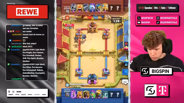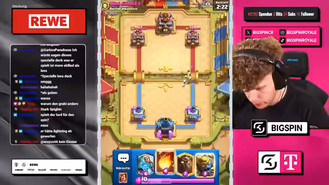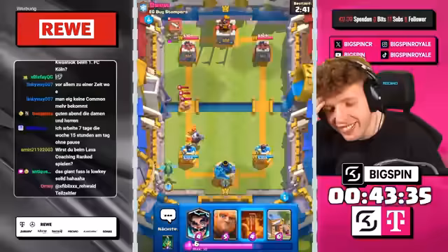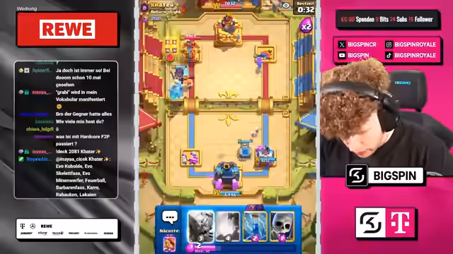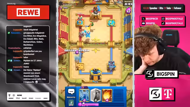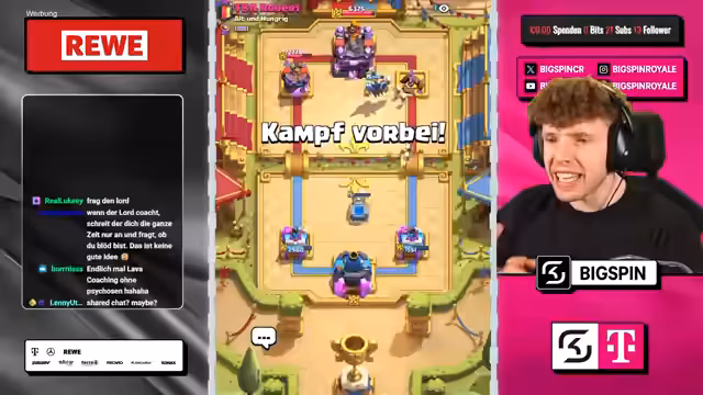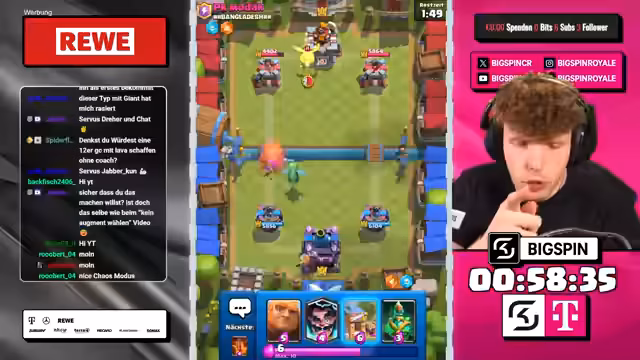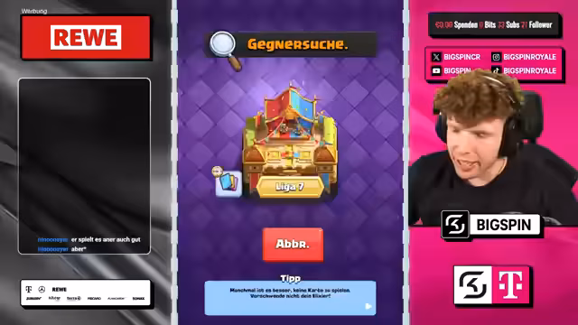 00:00:39Der Streamer begrüßt sein Publikum und verkündet seine hohe Motivation für den heutigen Stream, der sich voll und ganz dem Chaos-Modus widmen wird. Hauptziel ist es, mithilfe von Lava-Coaching die Meta-Decks für die Clash Royale Liga (CL) zu erlernen. Der Fokus liegt auf der Erweiterung des Deck-Pools mit Decks wie Lava-Hound, Graveyard und E-Giant, um erfolgreich Preisgelder zu gewinnen.