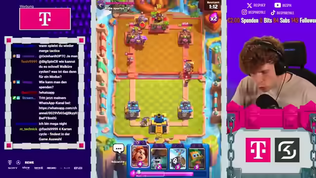 02:31:30Der Streamer befindet sich auf einer Hot-Streak und ist trotz möglicher zukünftiger Niederlagen weiterhin gut positioniert. Es wird ein Match gegen ein Grave-Attack-Deck erwartet, das als potenziell unbesiegbar eingeschätzt wird. Der Streamer muss den Gegner durchlaufen lassen, da dieser keinen Weins mehr hat, um die Pumpe zu bestrafen. Eine Hexe wird eingesetzt, um dem Evo Baby-Jaggen entgegenzuwirken. Der Streamer plant, einen Golem an der Brücke zu setzen, um die Evo-Walküre und den Evo-Baby-Jaggen des Gegners auseinanderzunehmen, was jedoch wahrscheinlich nicht gelingen wird. Der Streamer spielt gegen einen Objet und lobt sein eigenes On-Point-Spiel. Der Streamer spielt gegen 2.6 und ist kein Main Diner. Er verteidigt sich und spielt Musketieren hinten mit Eisgrün zum Kiten. Der Clanname des Gegners wird als krass bezeichnet. Der Streamer hat einen Feuerball und hofft auf einen Mortar vom Gegner. Die Defense funktioniert gut, aber die Berserkerin des Gegners ist nervig. Der Streamer muss den Hawk bringen und hofft, den Mortar des Gegners bestrafen zu können. Er spielt nicht perfekt, ist aber irgendwie online.