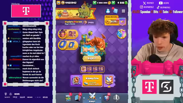 00:00:00Der Stream beginnt mit der Begrüßung des Chats und der Ankündigung eines vollen Programms. Hauptziel ist es, im Free2Play Plus Pass Projekt die dritte Level 15 Karte auf dem Hauptaccount zu erreichen. Um dies zu ermöglichen, wird der Streamer für 100 Minuten jeden Gegner-Deck kopieren, die Ladder hochspielen und am Ende eine 'vier Karten Deck Action' durchführen. Es gibt zudem eine Ankündigung, dass der Ranglistenmodus ab Liga 4 freigeschaltet wird und ein Event mit vier Evolutionen bevorsteht.
