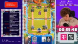01:36:37Während der Deck-Kopie-Phase treten plötzliche technische Probleme und Lags auf, die das Gameplay beeinträchtigen. Der Streamer bemerkt, dass auch Zuschauer betroffen sind. Es wird versucht, das WLAN zu wechseln, um die Probleme zu beheben. Trotz der Hindernisse wird die Challenge fortgesetzt und das Deck des Gegners kopiert, um die Performance zu testen.