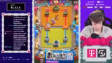 01:07:49Der Streamer spielt gegen ein Deck mit Walküre und Lava Hund, das er zunächst als Lavaloon identifiziert. Er setzt Guards ein und überlegt, ob er eine B-Karte spielen soll, entscheidet sich jedoch dagegen. Der Gegner spielt einen Lava Hünd, während der Streamer den Graveyard setzt. Der Gegner hat Schwierigkeiten, mit dieser Situation umzugehen, und der Streamer nutzt dies aus, um das Spiel mit einem gezielten Schneeball und einer Musketierin zu gewinnen.