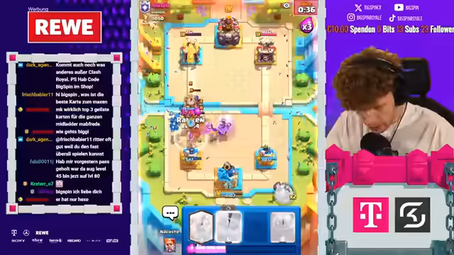 03:26:00Es wird versucht, alle Strategien optimal umzusetzen, wobei der Ofen immer hinten platziert wird. Die Kombination aus Valkyrie und Rollox wird als gut befunden, obwohl der Einsatz nur einer Valkyrie möglicherweise besser gewesen wäre, um Elixier zu sparen. Es wird festgestellt, dass mehr Schaden verursacht wird als der Gegner, da dieser nur Level 14 Türme hat. Eine Beichte wird abgelegt: Auf dem Free-to-Play-Account wurde ein Vierer mit 68 Elektro-Drachen erreicht. Ein Fehler beim Spielen wird eingestanden, aber als nicht schlimm abgetan. Es wird besprochen, wie man Rekruten und Rollerhawks am besten bestraft und wann man den Ofen hinter Bats spielen sollte. Ein Graveyard-Angriff mit Cracker & Vines führt zu extrem viel Schaden. Die Valkyrie wird strategisch an der Brücke platziert, um Rollhawks abzufangen, und es wird auf die unterschiedliche Reichweite gegen verschiedene Gegnertypen hingewiesen. Ein gutes Spiel wird mit GG beendet. Es folgt eine Diskussion über den Einsatz von Hawks und die Aufregung darüber, wenn etwas nicht nach Plan läuft. Das Spiel gegen einen Gegner mit extremem Magic wird als einfach gewonnen angesehen, was die Aggressivität des Streamers unterstreicht, da weder gegen das Golem- noch das Goblin Giant Metadeck gespielt wurde.