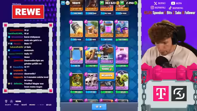 00:39:51Der Streamer betont sein außergewöhnliches Glück mit diesem Account, insbesondere beim Erhalt von Lucky Jobs und wichtigen Karten aus Dailies. Er hebt den Erhalt eines Elektro-Drachen hervor, der nun auf Level 14 ist, was eine erhebliche Verbesserung darstellt. Der Elektro-Drache in Kombination mit dem Golem auf Level 15 erweist sich als starke Kombination. Der Streamer erwähnt, dass das Upgrade des Elektro-Drachen sich sehr wichtig anfühlt und dass er ihn, sobald er die nächsten 50.000 Elite-Jogger hat, auch direkt auf Level 15 machen kann. Er gewinnt ein Spiel dank des verbesserten Elektro-Drachen und erwähnt beiläufig, dass er fast jeden zweiten Tag einen außergewöhnlich guten Job macht. Er nutzt die Gelegenheit, um Karten-Upgrades mit gesammelten XP durchzuführen und erreicht ein neues Level, wobei er sich über die Level-Truhe freut.
