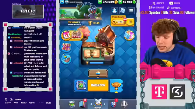 01:00:04Der Stream geht weiter mit dem unermüdlichen Kampf um Trophäen und dem Ziel, den ersten Platz in der Weltrangliste zu erreichen. Die Spieler reflektieren über die geringe Anzahl an Trophäen, die sie manchmal für einen Sieg erhalten, bleiben aber motiviert. Sie wünschen sich eine "Bohnentruppe" auf der Hand, um besser gegen bestimmte Decks bestehen zu können. Es kommt zu weiteren intensiven Matches, darunter auch gegen Gegner, die Mega-Minion-Raketen-Decks spielen, die als "nichts" im Vergleich zu den eigenen Strategien abgetan werden. Die Spieler sind entschlossen, mehr Trophäen zu sammeln und sich weiter nach oben zu kämpfen. Sie analysieren ihre Spielzüge und versuchen, ihre Strategie zu optimieren, um auch gegen unerwartete Deck-Kombinationen bestehen zu können. Die Zusammenarbeit mit DoomCR bleibt der Schlüssel zum Erfolg, und die Spieler sind zuversichtlich, ihr Ziel zu erreichen.