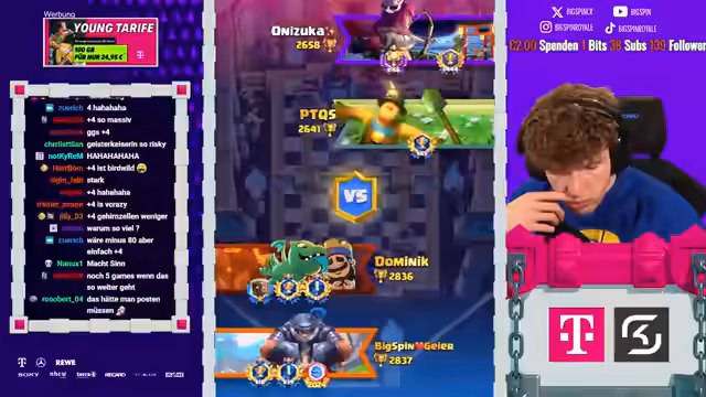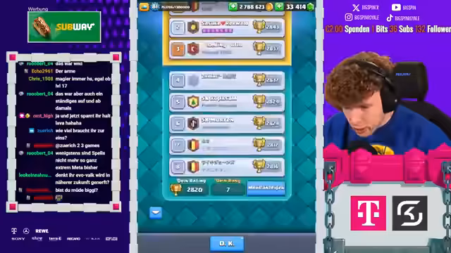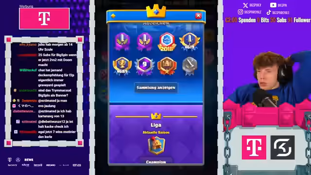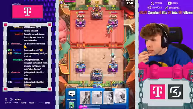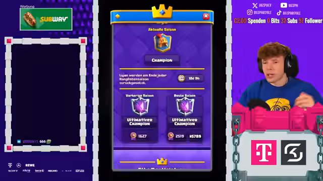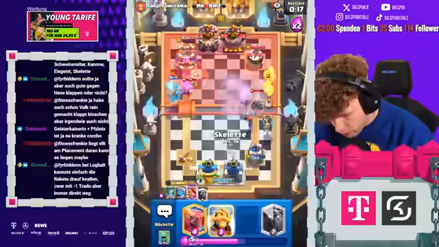00:18:29Die Spieler setzen ihren Kampf um die Spitze fort, wobei sie sich aktuell auf Platz 127 befinden und weiterhin Trophäen sammeln. Sie betonen die Stärke ihres Decks, das als "ernst stark" beschrieben wird. Doch der Weg nach oben ist steinig, insbesondere wenn sie wiederholt auf Gegner treffen, die mit Doppelkanonen und hochleveligen Karten spielen. Die Frustration steigt, als sie erneut gegen ein X-Bogen-Deck antreten müssen, was als "krank" und "Psychose" bezeichnet wird. Trotz der Herausforderungen und des Gefühls, "stinksauer" zu sein, versuchen die Spieler, ihre Strategie anzupassen und durch gezielte Angriffe und Verteidigungen die Oberhand zu gewinnen. Die Matches sind oft knapp und erfordern präzises Timing und gute Kommunikation. Die Spieler sind entschlossen, sich nicht unterkriegen zu lassen und weiterhin um den ersten Platz zu kämpfen, auch wenn der Trophäengewinn manchmal gering ausfällt.