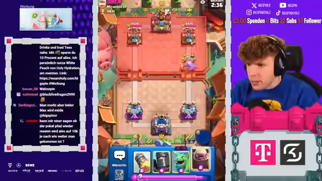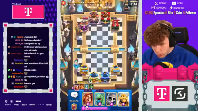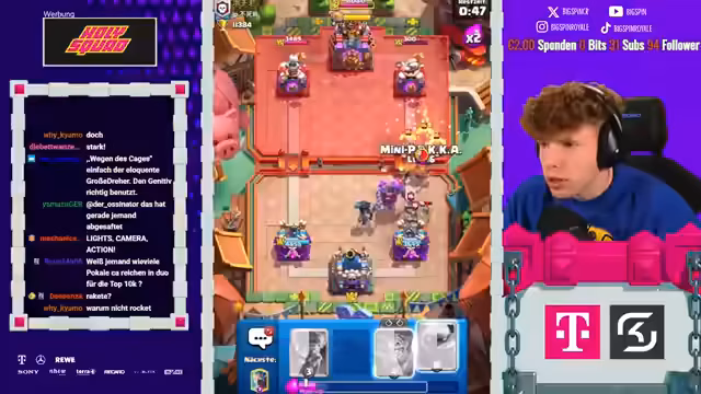 00:10:01Nach einem erfolgreichen Start geht es weiter mit neuen Matches, die jedoch auch Herausforderungen mit sich bringen. Die Spieler reflektieren über die Intensität von 2 gegen 2 Matches und die Notwendigkeit einer guten Koordination. Ein wiederholtes Aufeinandertreffen mit Gegnern, die X-Bogen-Decks spielen, führt zu Frustration und der Notwendigkeit, die Strategie anzupassen. Es wird diskutiert, wie man am besten gegen solche Decks vorgeht, insbesondere wenn die eigene Hand keine geeigneten Bodentruppen bietet. Die Spieler versuchen, durch aggressive Lavabrücken und gezielte Lightning-Einsätze Druck aufzubauen und die gegnerischen Türme zu zerstören. Trotz Rückschlägen und dem Gefühl, "auszurasten", wenn man zum dritten Mal in Folge gegen dasselbe X-Bogen-Deck spielt, bleiben die Spieler fokussiert und schaffen es, sich anzupassen und weitere Siege zu erringen. Die Bedeutung einer stabilen Winrate wird betont, auch wenn der Aufstieg in der Rangliste langsam voranschreitet.