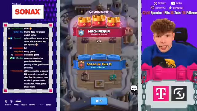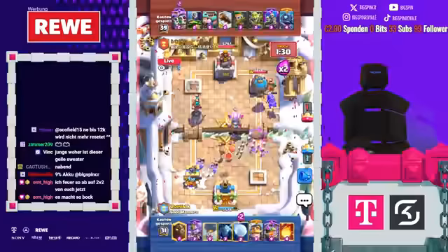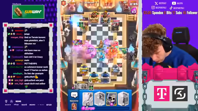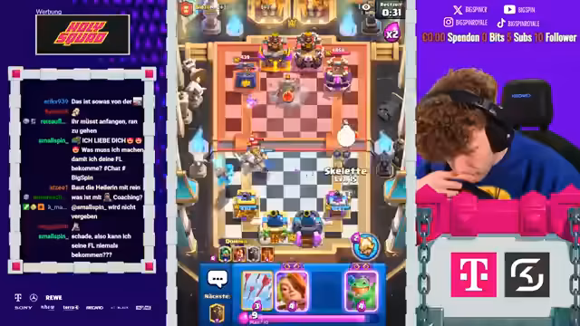 00:33:17Die Herausforderung, gegen X-Bogen-Decks zu spielen, bleibt bestehen und führt zu intensiven Auseinandersetzungen. Die Spieler müssen ihre Strategie ständig anpassen, um den aggressiven Angriffen der Gegner standzuhalten. Es wird betont, wie wichtig es ist, Bodentruppen zu behalten und gezielte Lightning- und Pfeil-Einsätze zu nutzen, um die gegnerischen X-Bögen zu neutralisieren. Trotz anfänglicher Schwierigkeiten und dem Gefühl, "auszurasten", wenn die Hand keine geeigneten Karten bietet, gelingt es dem Duo, durch gute Koordination und präzises Spiel die Oberhand zu gewinnen. Die Freude über den Sieg gegen ein X-Bogen-Deck im 2v2-Modus ist besonders groß, da dies als "insane" und schwierig zu bewerkstelligen gilt. Die Spieler sind stolz auf ihre "stabile Winrate" und die Fähigkeit, sich auch gegen schwierige Matchups durchzusetzen. Der Kampf um die Spitze geht weiter, und die Spieler sind bereit für die nächsten Herausforderungen.