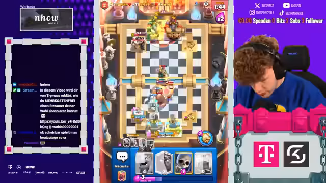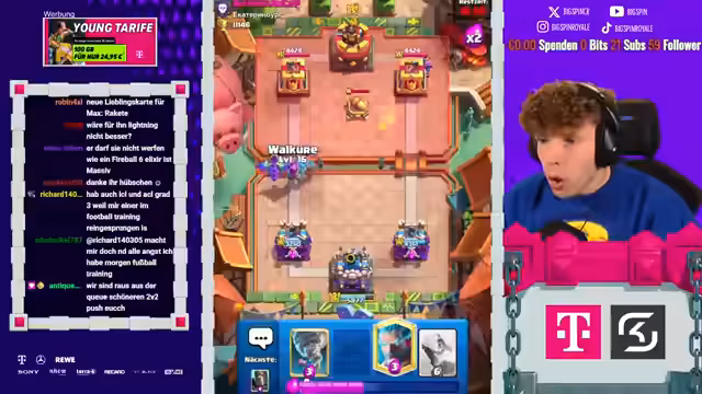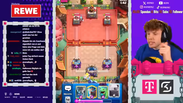 02:42:39Im weiteren Verlauf des Streams wird ein Matchup gegen ein Deck mit Royal Hogs und Queen analysiert. Es wird erklärt, dass es wichtig ist, auf den richtigen Moment zu warten, um den Elixier-Vorteil zu nutzen. Der Einsatz von Baby Dragon und Dark Prince gegen die Royal Hogs wird besprochen, wobei die Aktivierung des King Towers als defensive Option dient. Die Rakete wird als entscheidendes Werkzeug gegen die Royal Hogs eingesetzt, um deren Schaden zu minimieren. Die Queen wird als besonders nervige Karte für das eigene Deck identifiziert, da sie viele Truppen effektiv abwehren kann. Die Strategie, den Golem hinten zu platzieren und einen starken Push aufzubauen, während man gleichzeitig die gegnerischen Angriffe abwehrt, wird als Schlüssel zum Erfolg angesehen. Die Fähigkeit, schnell auf die gegnerischen Spielzüge zu reagieren und die eigenen Evolution-Karten optimal einzusetzen, ist hierbei von größter Bedeutung.