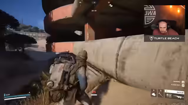 04:35:42Einmal mehr versucht der Streamer, die Zusammenarbeit mit einem anderen Spieler zu etablieren. Sie planen einen gemeinsamen Zugang zur 'Bastion' um einen Gegner zu eliminieren. Die Mission scheitert jedoch, als der Spieler unter mysteriösen Umständen zusammenbricht und der Streamer nun allein und in strategisch nachteiliger Position ist.