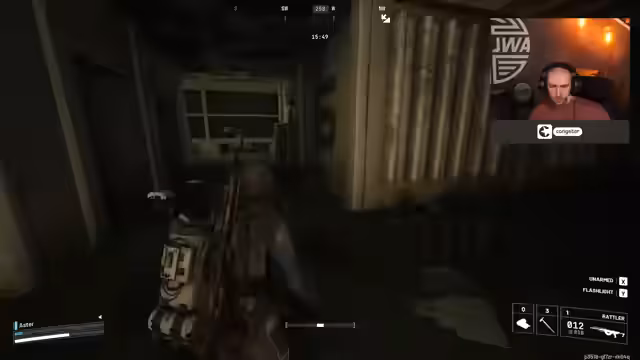 04:24:19Der Streamer stößt auf einen anderen Spieler, der sich auffällig verhält und klingt, als ob er rauchen würde. Die Interaktion ist zunächst verwirrend, da der Streamer den Zustand des anderen Spielers nicht einordnen kann. Es entwickelt sich eine kurze, befremdliche Konversation, die sich jedoch schnell auflöst und die anfängliche Bedrohungssituation entschärft.