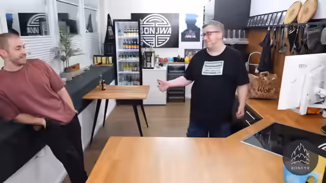 00:24:39Ein positives Highlight ist der Empfang der eigenen Turtle Beach-Ausrüstung, der Streamer kann jetzt seine persönlichen Tastatur, Maus, Headset und Controller benutzen. Gleichzeitig beschreibt er den alltäglichen Ablauf im Studio, der von Hamu und Simon einmal wochentlich betreut wird, was zu Vorwürfen des Arbeitszeitbetrugs führt. Hamu ist damit beschäftigt, einen kaputten alten Fernseher durch einen neuen 65-Zoll-4K-OLED-Fernseher zu ersetzen, was als eine Form der 'Männerbeschäftigung' bezeichnet wird.