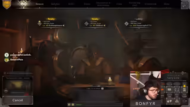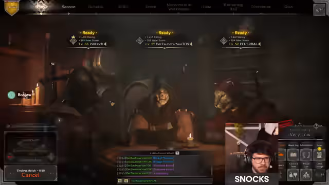01:28:57Der Stream beginnt mit dem Einstieg in den PvP-Arenamodus für ein 3-gegen-3-Team. Die Team-Komposition umfasst einen Sork, einen Cleric und einen Fighter. Die Anfangsphase ist von taktischen Überlegungen geprägt, wie man den Raum nutzt und ob man defensiv bleibt oder aggressiv pushen soll. Man entscheidet sich dafür, den aktuellen Raum zu halten und wartet auf den gegnerischen Push, während man die Stärken der eigenen Kombination aus Cleric-Heilung und Sork-Damage ausnutzt.