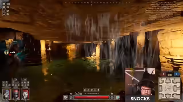 05:39:00Zu Beginn des Streams kämpft das Team gegen ein starkes Barde-Warlock Duo. Es werden aggressive Pushes mit viel Schaden wie Feuerwall und Hydra ausgeführt. Der Streamer analysiert die Spielweise des Gegners, der mit Protection Magic zu kämpfen scheint. Das Team verteidigt sich und reagiert auf die Angriffe, wobei der Streamer versucht, Schaden zu vermeiden und Gegenangriffe einzuleiten, wie einen gezielten Frostball.