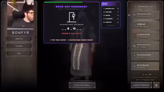 00:00:00Der Stream startet mit einem Raid von Bonjois. Der Streamer testet SourceRoller und erkundigt sich nach den Preisen für Arena-Kits. Er zeigt sein neuestes Sorcerer-Kit, das extrem hohen Schaden an, aber nur 108 Leben hat, was als gefährlich eingestuft wird. Der Streamer erwähnt, dass er vorrangig Slayer Fighter spielen möchte, da Plattenfighter zu sehr auf Blocken basiert und ihm keinen Spaß macht, und dass er auch ein Barbar-Kit getestet hat.