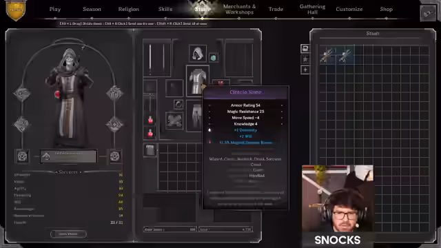 01:08:38Nachdem die offizielle Arena-Saison beginnt, zeigt der Streamer sein neues Sorcerer-Kit. Er legt Wert auf hohe Beweglichkeit, Wille und Schaden. Sein Setup umfasst einen Buckler für die beste Impact Resistance, Schuhe mit Stärke für ein langschwertiges Finisher und lila Ausrüstung. Das Ziel ist es, Spaß zu haben und die Top 100 in der Vanquisher-Kategorie zu erreichen. Das Team bereitet sich auf die Placement Matches vor und tauscht sich über mögliche Metas wie Anti-Heal und Druiden aus.