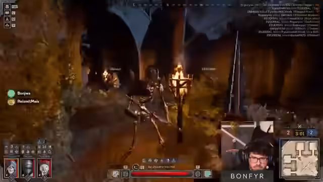 00:26:28Das Team erringt einen klaren Sieg gegen ein Wizard- und Barde-Team. Der Streamer betont, wie wichtig es ist, gegnerische Nahkämpfer zu isolieren und wie stark Rüstungsdurchdringung (Amor Pen) gegen gegnerische Fighter ist. Er erkundigt sich nach Solo-Empfehlungen und stellt fest, dass Fighter im Solo-Modus sehr spaßig sein kann. Ein weiteres Team wird erfolgreich im Friedhof bekämpft.