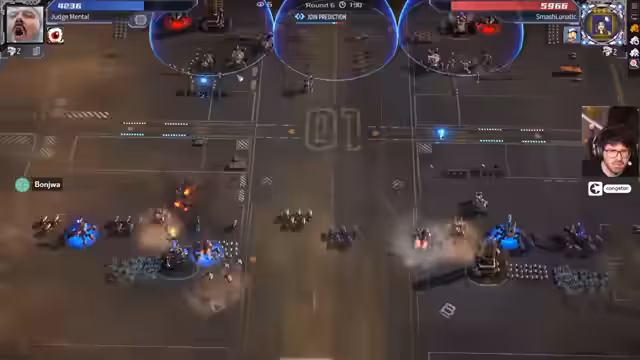 05:50:37Das Spiel startet mit strategischen Entscheidungen und unitabhängigen Herausforderungen. Der Streamer und sein Team müssen gegen verschiedene Angriffsmuster, darunter Wespen, Scorpions und Stormcaller, verteidigen. Es entwickeln sich taktische Manöver wie das gezielte Setzen von Raketen und das Nutzen von Vorteilen in Ressourcen, um den Gegner langfristig in die Defensive zu zwingen. Ein bemerkenswerter Wendepunkt gelingt durch den strategischen Einsatz von Smokes und einer erfolgreichen Countertaktik.
