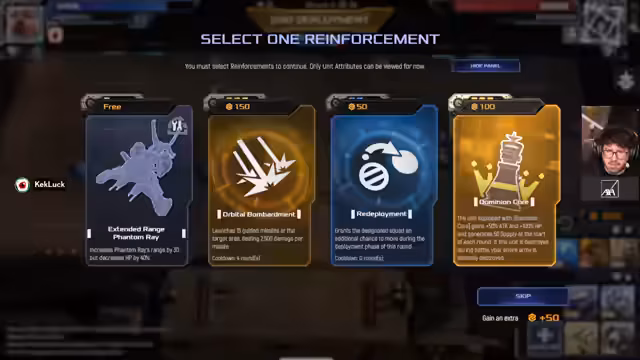 06:49:20Ein neues Spiel beginnt, und der Streamer stellt seine Units vor, darunter Mustangs und Crawler, gegen eine Gegner-Kombination aus Arklay und Slashjammer. Er ist unsicher über seine aktuelle Aufstellung und merkt an, dass er vielleicht Tanks in der nächsten Runde braucht. Es gibt eine Diskussion über die Stärke von Flanks und wie sich das Spiel durch neue Strukturen verändert hat, die Flanks weniger effektiv machen. Der Streamer spielt mit der Idee, absichtlich eine Runde zu verlieren, um eine stärkere Strategie für die nächste Runde einzusetzen, und erwähnt Sabertooth zum Tanken. Es werden auch andere Einheiten wie Explosive Rhinos und Smoke Bomb diskutiert, die jedoch als teuer oder nicht effektiv erachtet werden.
