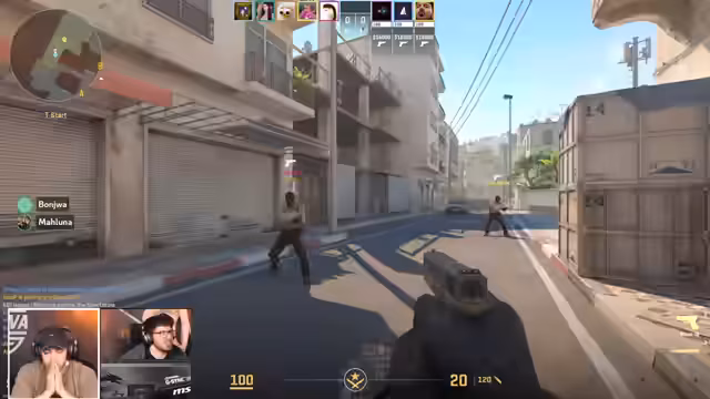 02:57:15Im Finale des Spiels stehen sich die Teams in einer entscheidenden Runde gegenüber. Der Streamer bleibt überfordert mit der Orientierung auf der Map und gibt unzählige falsche Positionen an. Trotzdem findet das Team einige taktische Erfolge und kann wichtige Eliminierungen erzielen. Nach vielen Runden steht es unentschieden und es muss eine Entscheidungsrunde her. Das Team diskutiert über die Wahl der nächsten Map und entscheidet sich für Inferno. Es zeigt sich großer Ehrgeiz und die Spieler wollen unbedingt gewinnen, auch wenn sie an ihre Grenzen stoßen.