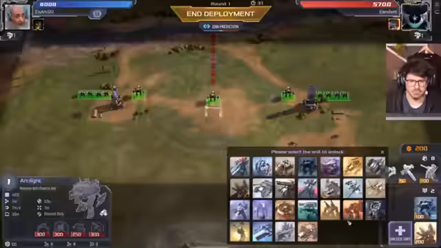 08:26:01Die Streamer spielen mehrere Runden Mechabellum und treffen taktische Entscheidungen wie den Einsatz von Einheiten wie Level-2-Spinne und Rhino Assault. Sie müssen auf gegnerische Züge reagieren und ihre Strategie anpassen. Dabei entstehen knappe Situationen, in denen es um den Sieg oder die Niederlage geht. Die Spannung während der Kämpfe zeigt die hohe Komplexität des Spiels und die Notwendigkeit schneller Entscheidungen.