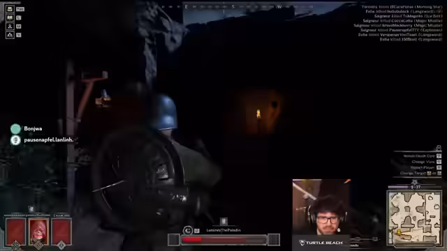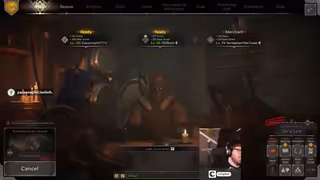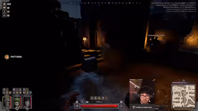 01:46:11Zu Beginn des Streams befindet sich der Streamer auf dem Brückenturm und trifft auf zwei Mitspieler. Die Gruppe macht sich auf den Weg zum Friedhof, wo sie auf Gegner treffen. Nach einem Kampf, bei dem der Streamer stirbt, wird der Wiedereinstieg in das Spiel thematisiert. Ein Spieler wird von einem Rogue bestohlen, was als Streamsniping vermutet wird. Die Gruppe tauscht sich über ihre Ausrüstung aus und der Streamer bietet anderen Spielern spezielle Gegenstände wie einen Radiant Cloak an. Die Kommunikation und Taktik der Gruppe wird während der Kämpfe ständig angepasst.