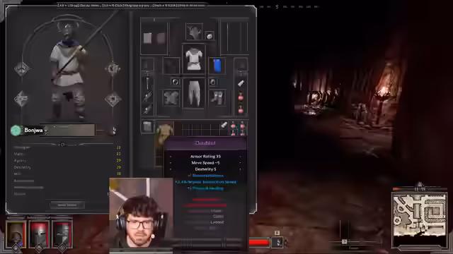01:32:29Der Stream beginnt mit der Bearbeitung eines Login-Server-Fehlers, wobei der Streamer empfiehlt, bei Steam die Dateien auf Fehler überprüfen zu lassen. Es werden erste Loot-Strategien und Quests besprochen, darunter der Besuch eines Friedhofs. Ein geheimer Loot-Spot in einem Raum wird erwähnt, in dem laut dem Streamer gute Gegenstände wie ein Strength-Amulett zu finden sind. Der Streamer teilt mit, ein solches Amulett mit zwei Strengths, zwei Vigor und vier Max-Life-Zonen gefunden zu haben.