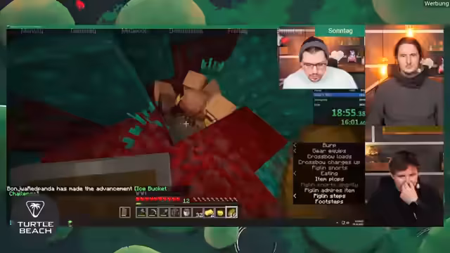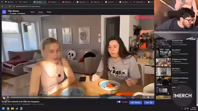 01:38:02Die Nutzung eines In-Ear-Systems während der Moderation wird als anstrengend beschrieben, insbesondere da der Streamer früher bei Großveranstaltungen sogar zwei Funkgeräte gleichzeitig im Einsatz hatte. Diese intensive Nutzung führte zu 'Phantomfunk', bei dem man nach sieben Tagen die Stimmen noch immer hört, selbst unter der Dusche. Eine Freundin erlebte durch solche Überreizung sogar einen temporären Sehverlust. Die strikten Zeitvorgaben auf der Messe waren auf die Schließzeiten und die Bezahlung des Personals zurückzuführen. Nach dem Event musste das Equipment sofort abgebaut und ins Studio gebracht werden, da es nicht über Nacht auf der Messe bleiben durfte. Der Streamer und Daniel brachten die Sachen noch am selben Abend ins Studio. Die Küche im Studio ist seit 2018 nicht fertiggestellt und soll überarbeitet werden, einschließlich einer neuen Fensterbank und eines integrierten Bartresens. Ein neuer Getränkekühlschrank wurde aufgestellt, der abgeschlossen werden soll, um ihn vor Matteo und Leon zu schützen. Ab Januar wird der Streamer voraussichtlich montags öfter im Büro sein, da seine Frau dann auch montags im Homeoffice arbeitet. Es wird scherzhaft über das Wort 'leak' als neues Running Gag oder Jugendwort des Jahres gesprochen. Wasserschäden im eigenen Hausbau werden als nervenaufreibende Erfahrung geschildert, bei denen sogar der Estrich aufgebohrt werden musste. Die Displates aus dem Studio werden aussortiert und sollen an Mods verschenkt werden. Ein Bonjwa-Balkon ist aufgrund statischer Bedenken des Vermieters nicht möglich. Der Streamer würde die Moderation wieder übernehmen, wenn sich die Gelegenheit bietet.