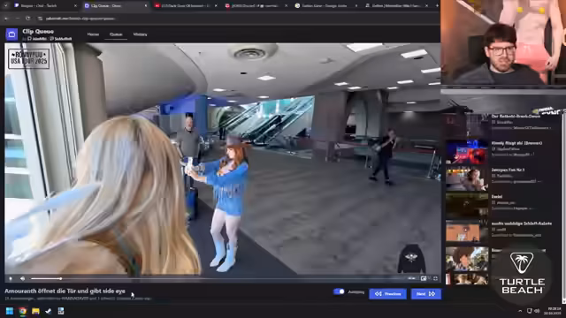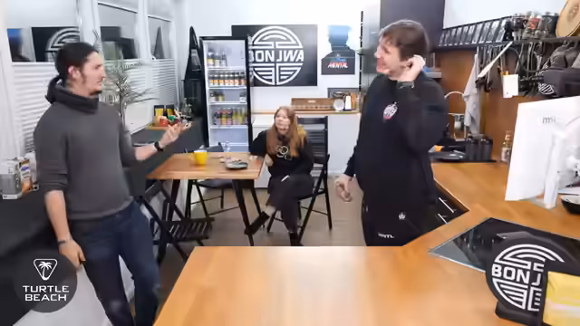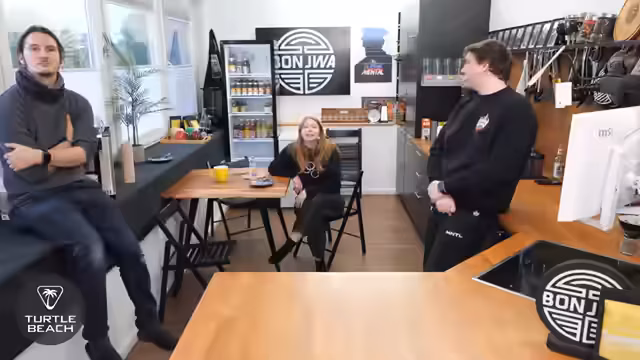01:21:51Es gibt Pläne für ein Mini-Fitnessstudio im neuen Studio, um die Hantelbank aus dem aktuellen Studio zu entfernen. Es wird scherzhaft über 'Fit mit Yannick' nachgedacht, möglicherweise im Stil der 80er Jahre mit Stirnband und Anzug, eventuell sogar mit Asta als Co-Trainer. Ein VR-Stream ist in Planung, möglicherweise ein 'Plank-Ding' für die nächste Woche. Es wird auch über einen 'Wehengürtel'-Stream gesprochen, bei dem Gino dabei sein soll. Eine '80er-Fitness-Kollektion' für Yannick wird vorgeschlagen. Der nachzuholende ComGames-Stream wird möglicherweise mit einer LAN-Party kombiniert, deren Datum noch geheim ist, aber humorvoll als 'heute um 19 Uhr' angeteasert wird. Ein Zuschauer errät das richtige Datum der LAN, und es wird scherzhaft über die Verlosung von Mauspads als Wetteinsatz gesprochen. Die LAN wird als 'Bonjwa-LAN' beschrieben, bei der die üblichen Skripts beibehalten werden. Es wird über die kuriose Art und Weise berichtet, wie das Team einmal auf einer Messe 'gespawnt' ist, indem sie eine unscheinbare Tür öffneten und sich plötzlich mitten im Trubel wiederfanden.