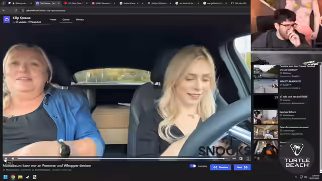 04:37:42Der Streamer reagiert begeistert auf ein Video, in dem eine Frau ihre Liebe zu einem Whopper-Menü von Burger King ausdrückt. Er ist so beeindruckt von ihrer leidenschaftlichen Beschreibung, dass er sie sofort als ideales Werbegesicht für Burger King vorschlägt, da er selbst jeden Whopper kaufen würde, wenn sie ihn bewerben würde. Er stellt sich humorvoll vor, wie er die Mutter seiner Freundin Sonja zu Weihnachten mit einem Whopper überraschen könnte, verwirft diese Idee aber schnell wieder, da Fast Food als Weihnachtsgeschenk einen schlechten Eindruck hinterlassen könnte. Die Frau im Video äußert sich so enthusiastisch über das Essen, dass der Streamer scherzhaft meint, er würde 'wie ein Schwein essen', um ihre Freude nachzuempfinden. Er zieht eine humorvolle Parallele zwischen seiner eigenen Begeisterung für Sonjas Streams und der Art, wie die Frau im Video den Whopper betrachtet, und fragt sich, ob Sonja für ihn das ist, was ihre Mutter für Sonja ist. Die Szene wechselt zu einem Gutscheincode, den er sich nicht merken kann, was seine Gedanken über das 'große Whopper' verdeutlicht.