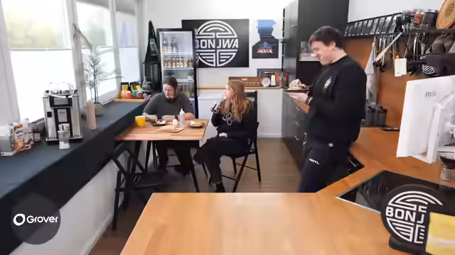 01:11:26Die Diskussion über die Arbeit im Studio versus Homeoffice wird vertieft, wobei die Vorteile des persönlichen Austauschs mit Kollegen betont werden. Es wird humorvoll angemerkt, dass vor der eigentlichen Arbeit oft zwei Stunden lang gequatscht wird, was den hohen Redebedarf unterstreicht, da man sich sonst selten sieht. Ein Studio-Meeting nach dem Quartalsmeeting am Freitag behandelte die Kopplung der Studios und die benötigte Technik. Es wird bekannt gegeben, dass das untere Studio, das Jen nutzen wird, ein Drittel größer ist als das aktuelle Studio. Dieser zusätzliche Platz wird gemeinsam genutzt, wodurch Bonjwa ein Sechstel von Jens Studiofläche übernimmt. Die Zusammenarbeit mit Jen wird als sehr gut beschrieben, und es wird über eine Provision für die Vermittlung des Mietvertrags scherzhaft nachgedacht. Der Vermieter bot Jen den gleichen Mietpreis pro Quadratmeter an wie Bonjwa, was als sehr kulant empfunden wird. Im gemeinsam genutzten Bereich sind Büros, Toiletten, eine Dusche und ein kleines Fitnessstudio geplant, um die Paketannahme zu optimieren und die Pakete nicht mehr privat empfangen zu müssen.