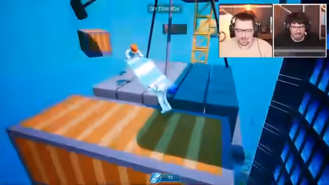 06:24:19Durch Teamwork und präzise Abstimmung gelingt es, eine Lücke zwischen Hindernissen zu nutzen und sich vorsichtig voranzutasten. Die Spieler manövrieren gemeinsam, wobei einer lenkt und der andere schiebt, um Hindernisse zu umgehen. Unerwartet wird entdeckt, dass man im Spiel springen kann, was die Navigation erheblich vereinfacht. Diese neue Fähigkeit wird genutzt, um leichter voranzukommen und Hindernisse zu überwinden. Die Rollenverteilung bleibt bestehen, wobei ein Spieler lenkt und der andere schiebt, um effizienter voranzukommen. Trotz einiger Schwierigkeiten und Hindernisse erreichen die Spieler einen Checkpoint und setzen ihren Weg fort.