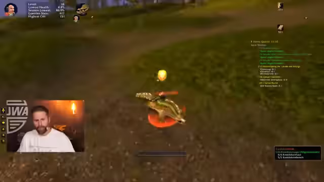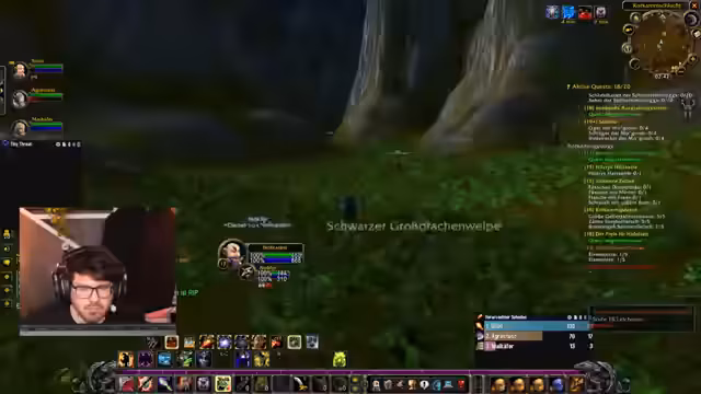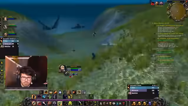 15:19:11Während der Kämpfe in der Wildnis treten Probleme auf, da nur ein einziger Heal-Spell zur Verfügung steht und es Bedenken gibt, ob dies ausreicht. Die Gruppe erkundet verschiedene Quest-Gebiete, einschließlich der Jagd auf Murlocs und Kondore, um benötigte Gegenstände wie Sonnenfische zu sammeln. Dabei wird über die strategische Vorgehensweise, wie das Kiten von Gegnern und das Vermeiden von zu vielen gleichzeitigen Angriffen (Overpulling), diskutiert. Der Kampf gegen einen Elite-Mob, den Kalmarik, wird als besonders gefährlich eingestuft und erfordert vorsichtige Taktiken.