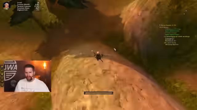 15:06:35Nachdem die lange Diskussion über die Tier-Arena beendet ist, kehrt der Streamer abrupt zum World of Warcraft Gameplay zurück. Er muss eine abgeschlossene Quest abgeben, stellt aber fest, dass sein Gruppenmitglied die Quest nicht angenommen hat, was zu einer kurzen Verwirrung führt. Nachdem geklärt ist, dass die Quest doch vorhanden ist, macht sich der Streamer auf den Weg, sie bei einem NPC abzugeben. Zeitgleich plant er einen gemeinsamen Deadmines-Run für den nächsten Abend um 22 Uhr.
