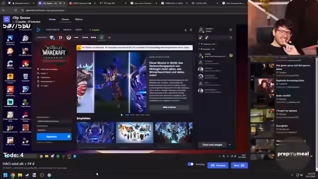 12:37:36Der Streamer wechselt zu World of Warcraft Classic, wo er die Planung für ein Deadmines-Event mit seiner Gilde bespricht. Dabei wird die Teilnehmerliste, geforderte Level und die Rollenverteilung (z.B. Schurke vs. Priester) diskutiert. Es entstehen Missverständnisse bezüglich der Teilnahme eines Heilers, was zu einer Neuausrichtung der Pläne führt. Zugleich wird eine tiefergehende Konversation über Sozialverhalten und den Abbau von sozialen Fähigkeiten in der Gaming-Community geführt.