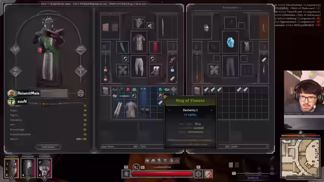 02:55:56Die Gruppe plant, den Flithof zu besuchen, um besseren Loot und Spieler zu finden. Es wird über den Weg dorthin diskutiert. Ein Amulett mit Will und Magical Damage Reduction wird gefunden. Es werden verschiedene Items gefunden und deren Nutzen für die einzelnen Klassen besprochen, darunter Speedhosen und Pikachus. Die Frage, ob jemand im Instrument ist, wird gestellt. Es wird versucht, jemanden hereinzubeten. Ein Rogue wird entdeckt und verfolgt. Es wird festgestellt, dass der Rogue wegläuft. Die Gruppe lacht über die Situation. Es wird festgestellt, dass ein Edelmann ausgenommen wird. Es werden zwei Castellan gefunden. Ein Rogue wird entdeckt und verfolgt. Es wird versucht, die Tür kaputt zu machen. Es wird festgestellt, dass der Rogue entkommen wird. Es wird überlegt, wie man zur Brücke kommt. Es wird überlegt, ob man in die Hölle jumpen soll. Es wird über eine mutierte Fliegenart diskutiert.
