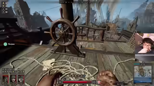 01:28:29Die Gruppe kehrt zur Wassermap zurück und stellt fest, dass sie Rat-Effects spielen konnten, da Bio-Limit episch ist. Ein Spieler kommentiert, dass die Pizza lecker war, aber zu teuer. Die Gruppe findet Ringe, die niemand benötigt. Sie entdecken ein Piratenschiff und befürchten einen Kroko-Sinn. Ein Krokodil greift an, wird aber besiegt. Es wird über die morgige Studio-Session gesprochen. Die Gruppe kämpft gegen weitere Gegner und ein Spieler tötet einen Korreliertypen. Ein Spieler verschwendet einen Schuss und muss die Kugel wieder aufsammeln. Es wird festgestellt, dass die Kugel in den Gegnern stecken bleibt. Die Gruppe sucht nach Munition und erkundet das Schiff. Ein Spieler prahlt damit, lange die Luft anhalten zu können. Die Gruppe tötet eine Schlammkrabbe und findet ein Quest-Item. Sie entdecken einen Käpt'n und geile Ringe. Ein Spieler benötigt Munition und findet Leder-Lamellar. Die Gruppe sieht ein anderes Schiff und versucht, mitzufahren. Sie werden von anderen Spielern angegriffen und verteidigen sich. Ein Spieler schlägt vor, einen Piraten-Song anzustimmen.
