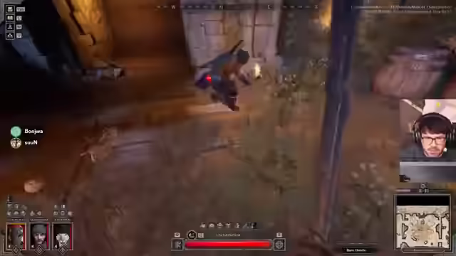 02:38:57Es wird überlegt, ob man als Skelett spielen soll. Ein Spieler verlässt das Spiel unabsichtlich. Es wird die Stärke des Skelett-Archers im Multishot-Spam hervorgehoben. Nach dem Tod durch ein Skelett wird der Goblin-Mann für das Wiederbeschaffen von Gegenständen gedankt. Die Idee, einen Sash zu tragen, um die Teammitglieder besser zu erkennen, wird diskutiert und umgesetzt. Es werden verschiedene Items gefunden und deren Stats bewertet, darunter ein Castillon-Dagger und ein Kristallschwert. Die Frage nach der Sinnhaftigkeit von Obstschalen in fremden Wohnungen wird aufgeworfen und neutral beantwortet. Schritte werden gehört, was auf Feinde hindeutet. Es wird ein Hebel betätigt, um etwas auszulösen.