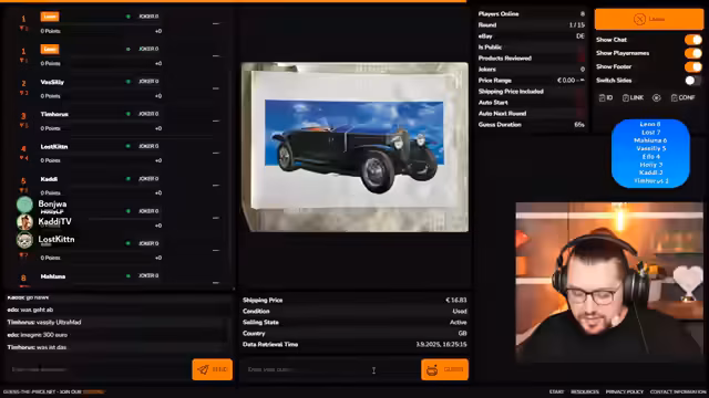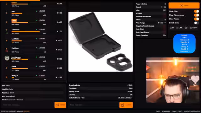 02:21:02Es wird erklärt, dass GeoGuessr, Guess the Prize und TimeGuessr gespielt werden sollen, wobei jedes Spiel etwa eine Stunde dauern soll. TimeGuessr wird als Spiel beschrieben, bei dem man anhand eines Screenshots das Jahr und den Aufnahmeort erraten muss. Es wird kurz ein anderer PC hochgefahren, da es Probleme beim Einloggen gibt. Die Anwesenden tauschen sich darüber aus, was sie gegessen haben. Vasili berichtet von der Taufe seiner Tochter und dem anschließenden Restaurantbesuch. Edo hat sich etwas bestellt, während die anderen eher selbst gekocht haben. Es wird versucht, die erste Lobby zu hosten, wobei festgestellt wird, dass die Website von Gäste-Price überarbeitet wurde und nun unübersichtlicher ist. Ein Link wird geteilt und es wird vor dem Doxxing bei Geogester gewarnt. Die Einstellungen für das Spiel werden angepasst, wobei die Location der Angebote wichtig ist. Der Titel des Produkts soll jedoch nicht angezeigt werden, um das Raten zu erschweren. Es wird sich für die Teilnahme bedankt, insbesondere bei Edo, der es vergessen hatte. Es wird betont, dass es eigentlich kompetitiv sein sollte, aber technische Probleme dies verhindern. Es werden eBay-Produkte von eBay Deutschland geschätzt, wobei der Fokus auf dem Verkaufspreis liegt. Es wird erklärt, dass der Selling State Informationen darüber gibt, ob das Produkt verkauft wurde oder nicht.