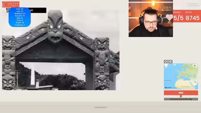 04:12:58Erklärt wird das Spiel TimeGaster, nachdem alle wieder anwesend sind. Es wird ein persönliches Eingeständnis der eigenen Unfähigkeit in diesem Spiel gemacht, untermauert durch die Anekdote, ein Clubhandy in einem Bild fälschlicherweise als Hinweis auf die 1960er Jahre interpretiert zu haben. Trotzdem äußert man große Begeisterung für GeoGaster und bedauert, dass man sich vom Chat hat beeinflussen lassen. Es wird klargestellt, dass Maluna das entscheidende Detail über das Auto mit den Streben erst nach der Runde bemerkt hat und der Klick nach Kirgisistan eher Glück als Wissen war. Nach einer kurzen Pause, in der ein Link zum Spiel in den Channel gepostet wird, wird die Spielmechanik von TimeGaster erläutert: Alle Spieler erhalten die gleichen fünf Bilder und müssen sowohl den Ort als auch die Zeit erraten, wobei für beides jeweils maximal 5000 Punkte vergeben werden. Es wird beschlossen, zuerst eine Solorunde zu spielen, bei der jeder seine Gedanken laut äußern darf, ohne jedoch in den Chat zu schauen. Nach etwa einer Viertelstunde trifft man sich wieder, um die Ergebnisse zu besprechen.
