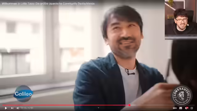 05:23:54Die Erkundung fortgehend, besucht der Streamer ein Teehaus und spricht mit der Tee-Zeremonienmeisterin Anna, die den Umgang mit Matcha-Tee als Schlüssel zur japanischen Kultur sieht. Anschließend wird ein japanischer Friseur besucht, der erklärt, dass asiatisches Haar eine spezielle Behandlung benötigt und viele deutsche Kunden anzieht. Zum Abend hin wird eine japanische Stehkneipe besucht, wo das Frittier-Hähnchen Karage als Spezialität serviert wird und typischerweise ohne Stühle und Tische ein authentisches Ambiente bietet.