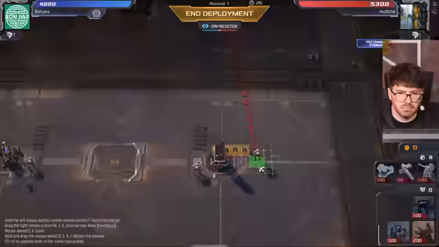 08:57:40Nach dem Ende der Command & Conquer-Runde startet der Streamer ein neues Spiel im Genre Tower Defense, konkret Mechabellum. Das Spiel beginnt mit einem unerwarteten Spawn und einer sofortigen Bedrohung durch einen Gegner namens Hans, der den Streamer aggressiv angreift. Eine Allianz mit dem Spieler Brethren wird geschlossen, um sich gegenseitig zu unterstützen. Der strategische Fokus liegt auf dem Bau von Verteidigungseinheiten wie Mustangs und Fangs, während der Streamer gleichzeitig auf die Eroberung neuer Inseln abzielt und sich gleichzeitig gegen übermächtige Gegner verteidigen muss, was zu einem dynamischen und spannungsgeladenen Gameplay führt.