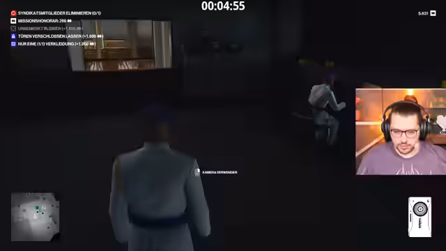 04:40:34Der Streamer wechselt das Szenario zu Marrakesch und startet eine neue Hauptmission, die eine Verkleidung erfordert, das Verstecken des Zielkörpers und das Vermeiden von ruhig gestellten Wachen. Um das Ziel ohne Aufmerksamkeit zu eliminieren, wird eine schallgedämpfte Pistole und eine Giftspritze ausgewählt. Ein planmäßiger Angriff misslingt, da der Streamer sich in einem für seine Verkleidung verbotenen Bereich befindet und die Situation eskaliert. Dies führt zum Tod des Charakters und zum Scheitern der Mission.