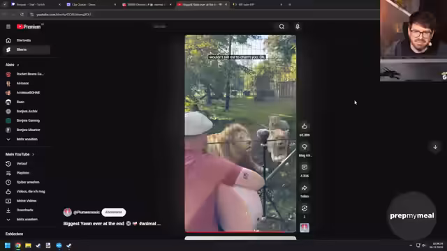 05:10:47Der Streamer taucht in ein abstraktes Thema ein, das zunächst mit einem unklar kommentierten Bild und einer langen Auseinandersetzung mit der Manipulation desselben beginnt. Der Fokus verschiebt sich dann grundlegend zur Frage der tierischen Kommunikation. Er erörtert, ob Tiere wie Delfine komplexe Erfahrungen wie den Weg durch ein Labyrinth an Artgenossen weitergeben können, was er letztendlich ablehnt und stattdessen auf die einfache Körpersprache bei Hunden verweist. Parallel dazu erzählt er persönliche Anekdoten aus seiner eigenen Vergangenheit als Bodybuilder im Alter von zwölf Jahren, schildert rigoroses Training und den mentalen Wandel nach einer Verletzung.