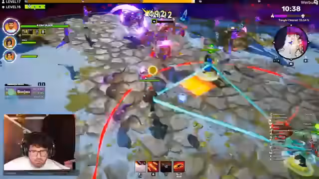 06:03:54Die Session fokussiert sich auf das schnelle Farmen von Ressourcen, um Items und Fähigkeiten zu verbessern. Es werden mehrere Events wie 'Pick up the parts' und 'Red Einstein' absolviert, die Boni wie Global Damage und zusätzlichen HP bieten. Gleichzeitig entsteht ein Problem, als für einen geplanten Dungeon-'Deadmines' ein Healer fehlt. Der Streamer startet eine dringende Suche im Discord und bei Mitspielern, um Ersatz zu finden.